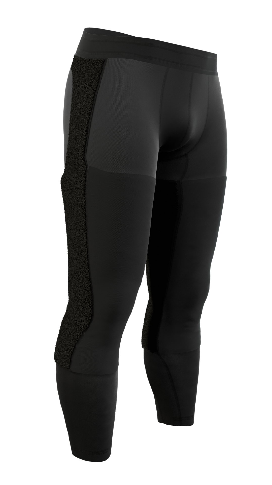 BraceUnder's system uses smart thermogenesis to reduce swelling using heat along the IT Band, hip joint, adductors, and both sides of the knee.