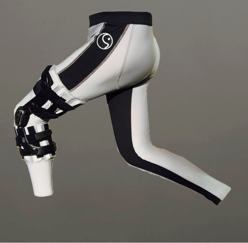 BRACEUNDER-i was the product that started this Company’s journey and it literally serves as an interface between the human body and knee braces currently available on the market. Aside from the preventative and rehabilitative function of the current knee braces available on the market, scientific reviews performed on the knee braces indicate that people don't wear their braces because they fit poorly, they are uncomfortable, they slip/ migrate down the leg, and the inhibit high quality movement.
